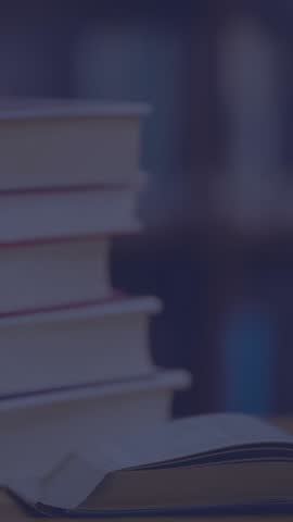 Digital animation of mathematical equations and graphs moving in the screen and a pile of books on a table and a bookshelf in the background.